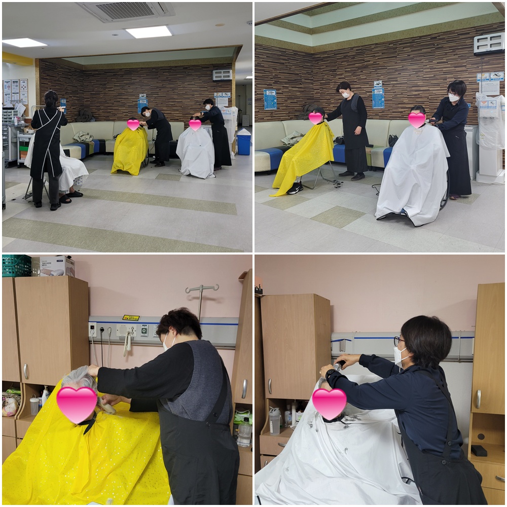 이미용 봉사활동(2025.12) 페이지 정보 작성자 : 사회복지실 조회수 : 34회 작성일 : 25-12-30 본문 12월 4일(목),16일(화), 청담뷰티아카데미학원과 삼일교회 미용봉사단에서 이미용 봉사활동을 진행해주셨습니다.서비스를 원하시는 어르신들을 차례로 반갑게 맞이해주시며 개개인의 요청에 맞게 서비스를 제공해주셨습니다.참여 어르신 모두 만족하며 감사의 인사를 전하셨습니다.매번 어려운 발걸음 해주시는 봉사자분들께 다시 한번 감사의 말씀을 드립니다. 목록 이전글시무식(2025.1.2) 26.01.02 다음글송년회(2025.12.26) 25.12.29