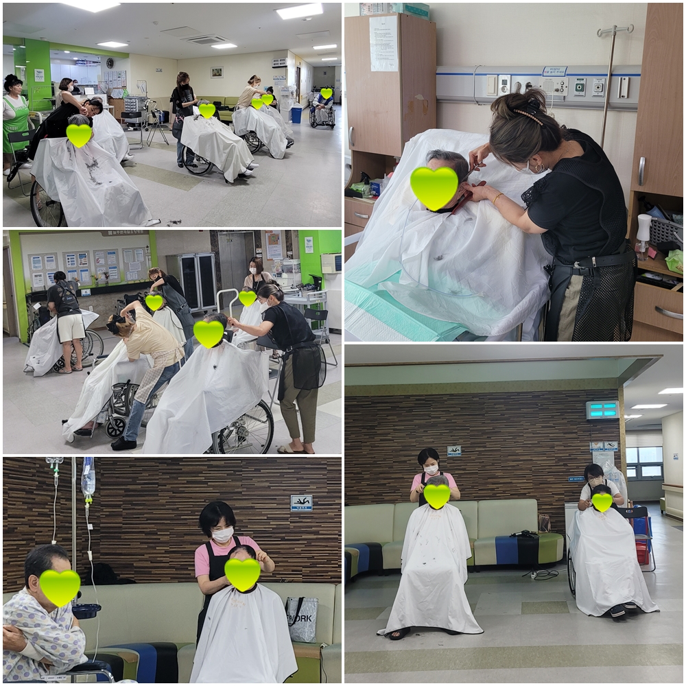 이미용 봉사활동(2025.08) 페이지 정보 작성자 : 사회복지실 조회수 : 356회 작성일 : 25-08-26 본문 8월 7일(목), 8월 11일(월), 청담뷰티아카데미학원과 삼일교회 미용봉사단에서 이미용 서비스를 진행해주셨습니다.많은 봉사자분들께서 참여해주신 덕분에 전병동의 어르신들이 편하게 이미용 서비스를 받을 수 있었습니다.희망자가 많아 소요시간이 길어졌음에도 끝까지 미소를 잃지 않고 어르신들을 맞이해주셨습니다.꾸준히 늘푸른요양병원을 찾아와주시는 이미용 봉사자분들께 감사와 존경의 마음을 전합니다. 목록 이전글2025년 8월 생일 25.08.26 다음글2025년 7월 생일 25.08.04