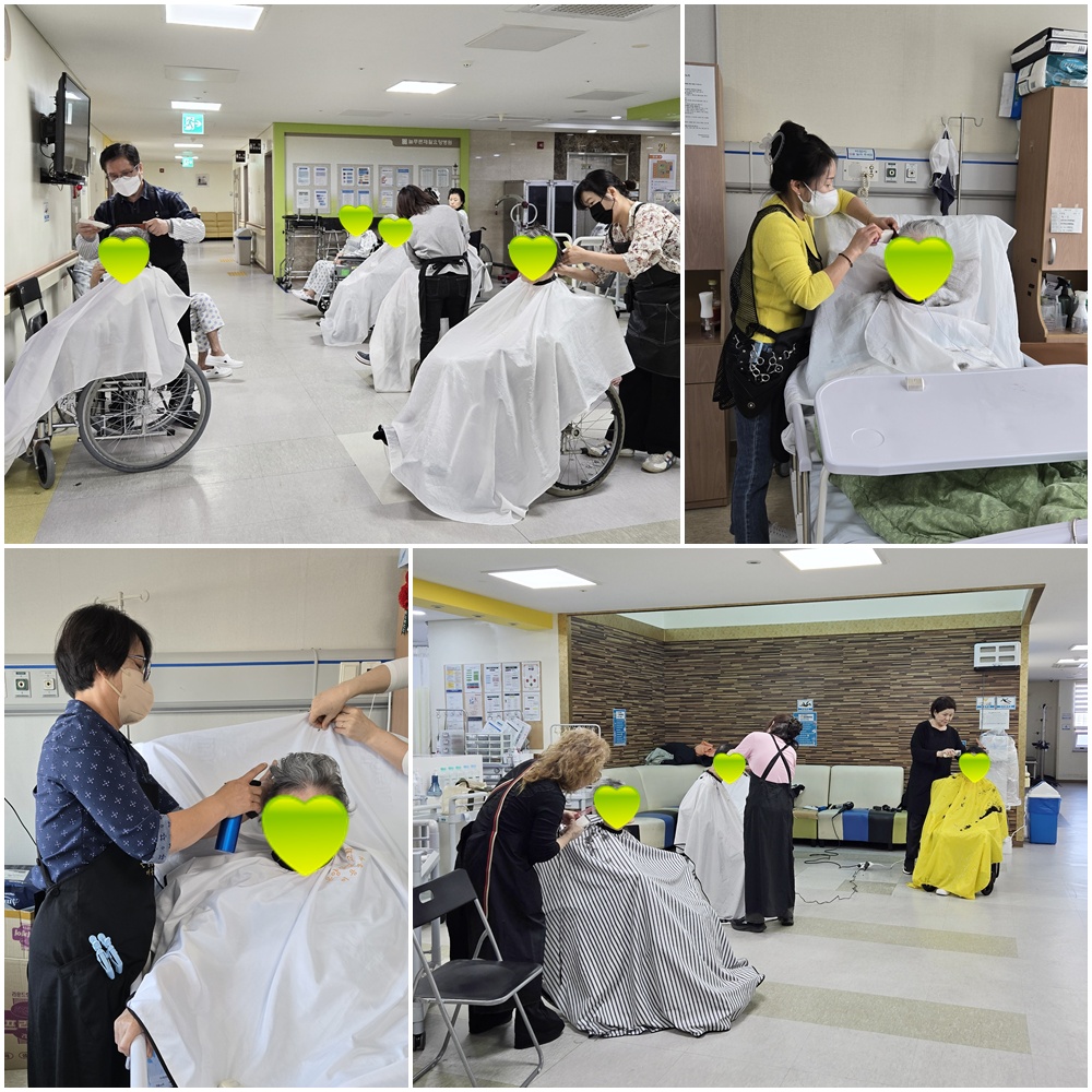 이미용 봉사활동(2026.03) 페이지 정보 작성자 : 사회복지실 조회수 : 36회 작성일 : 26-04-01 본문 3월 5일(목), 19일(목)에 청담뷰티아카데미학원과 삼일교회에서 이미용 봉사활동을 진행해주셨습니다.날씨가 따뜻해지는 만큼 이미용을 원하는 환자분들이 많았는데 웃는 얼굴로 끝까지 서비스를 진행해주셨습니다.서비스를 받은 어르신들은 모두 만족스러운 미소를 지으셨으며 연신 감사하다며 인사하셨습니다.매달 이미용 봉사활동을 실천해주시는 봉사자분들께 감사의 인사를 전합니다. 목록 이전글식목일 나무 심기 26.04.03 다음글늘푸른요양병원, 현대병원과의 협약 체결 26.04.01